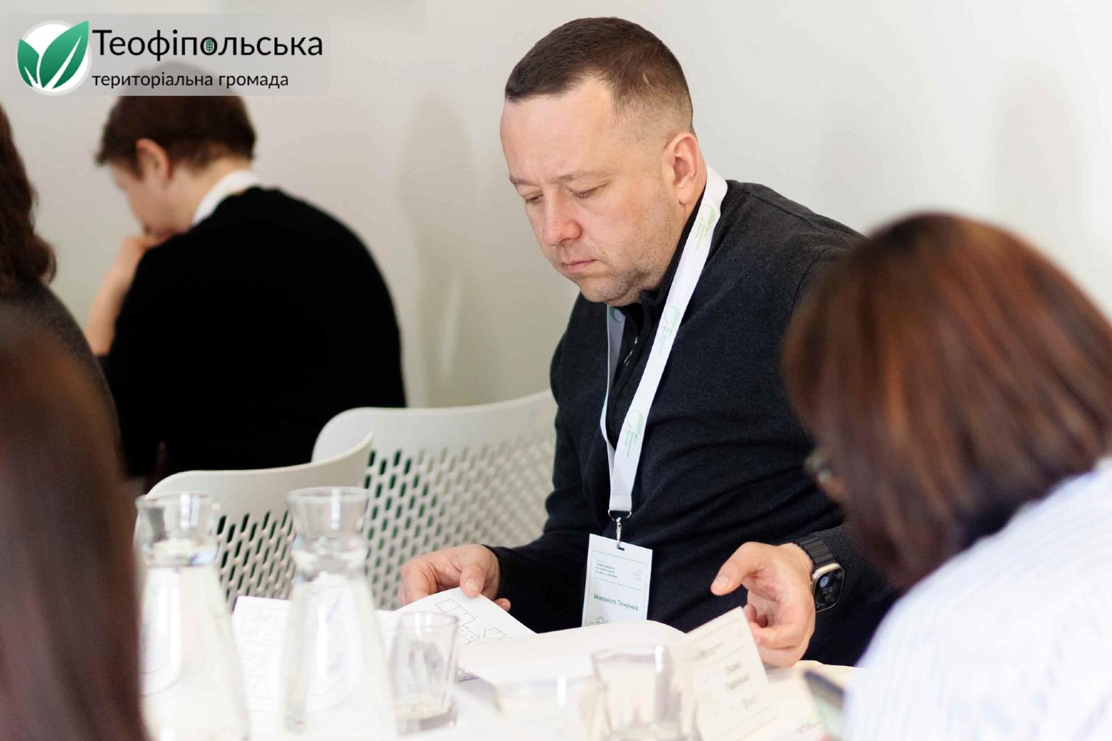 Під час заходу селищний голова поділився власним досвідом розвитку Теофіпольської громади, розповів про напрацювання та підходи, які вже застосовуються на місцевому рівні.